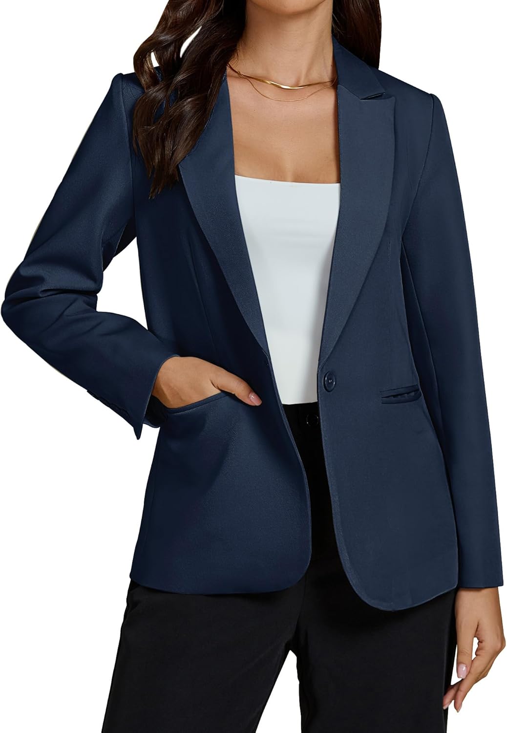 Dressy Blazers for Women Button Long Sleeve Lapel Business Casual Outfits Office Work Suit Blazer with Pockets