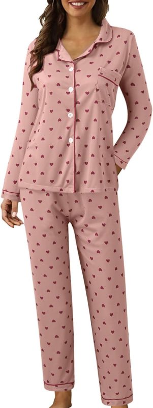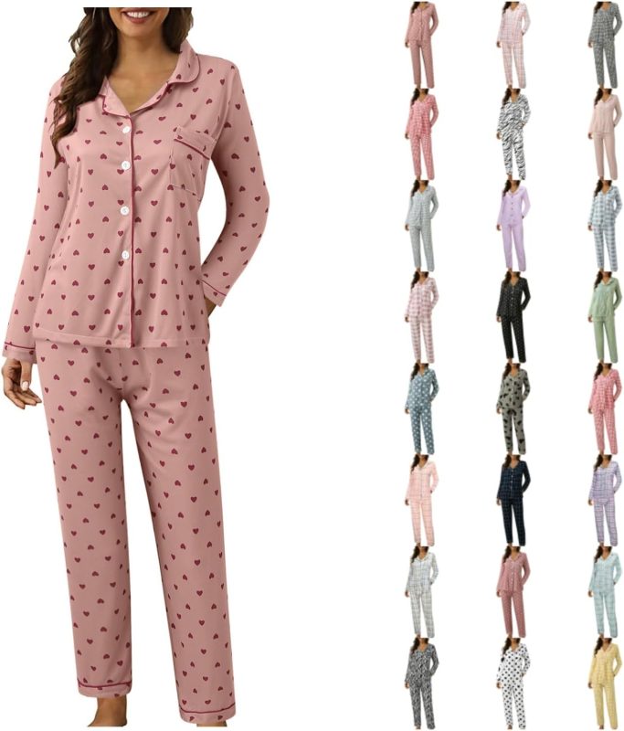 Cute Pajama Sets for Women Long Sleeve Sleepwear Button Loungewear Soft 2 Piece Pj Set with Pockets Long Pants