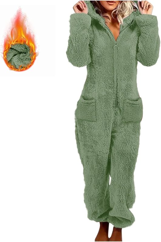 $40.76Fleece Onesie Pajamas for Women Sherpa Fuzzy Zipper Hooded One Piece Jumpsuit Warm Cinch Bottom Sleepwear with Pockets