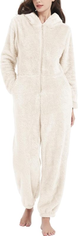 Women’s Onesies Pajamas Sherpa Fleece One Piece Romper Zipper Cute Hooded Jumpsuit Pajama Loungewear