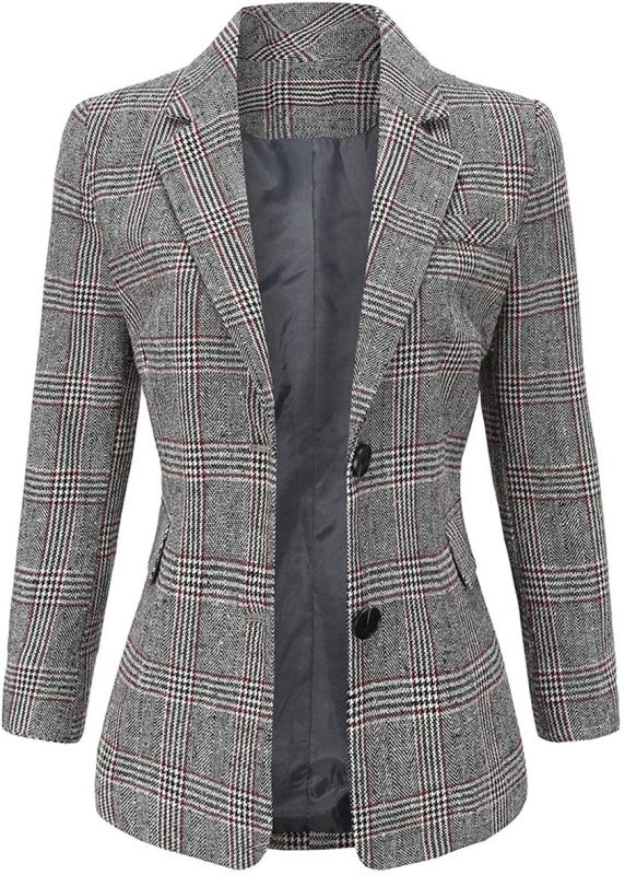 - new release fashion blazer designs with double breasted,long sleeves,no stretch material and side pockets.Highlight your shoulder and show your trendy style.A must-have womens blazer.