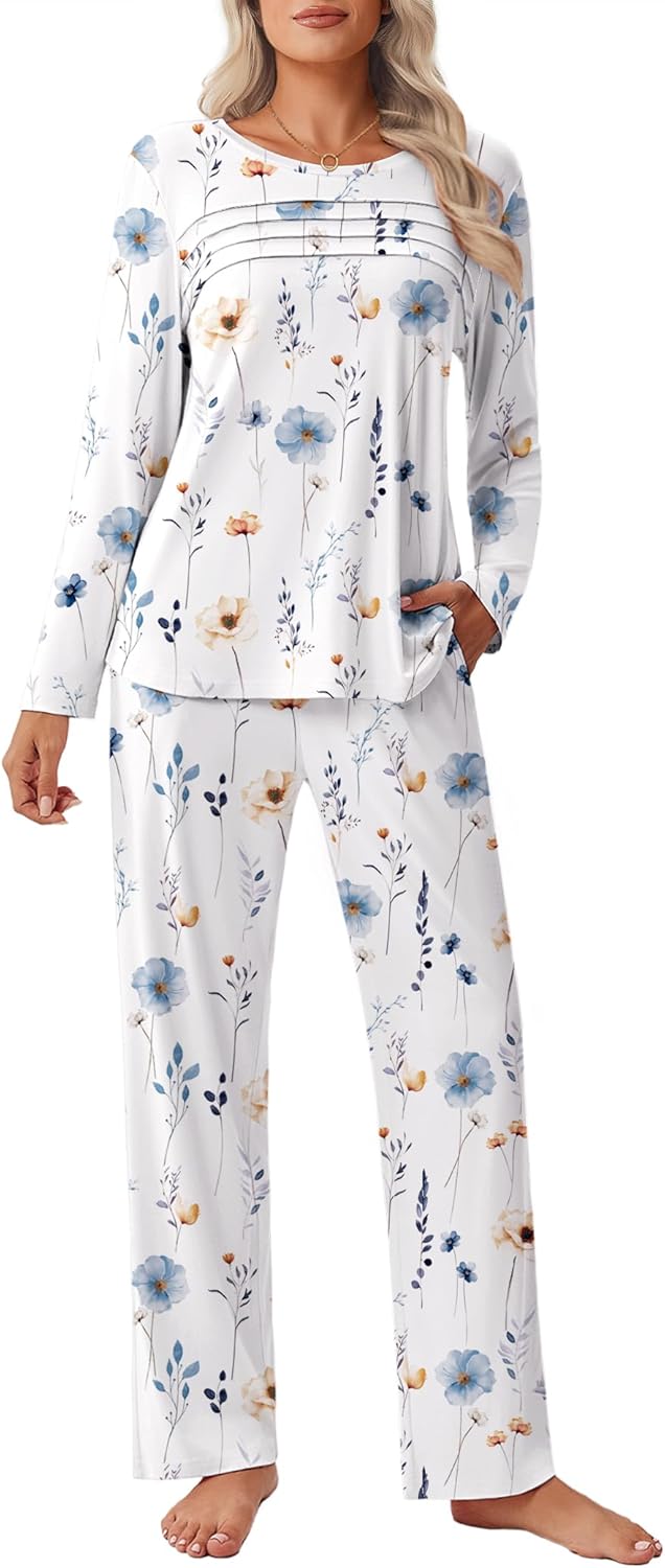 Women’s Pajama Sets Long Sleeve Lounge Sets Pjs Sleepwear with Pockets